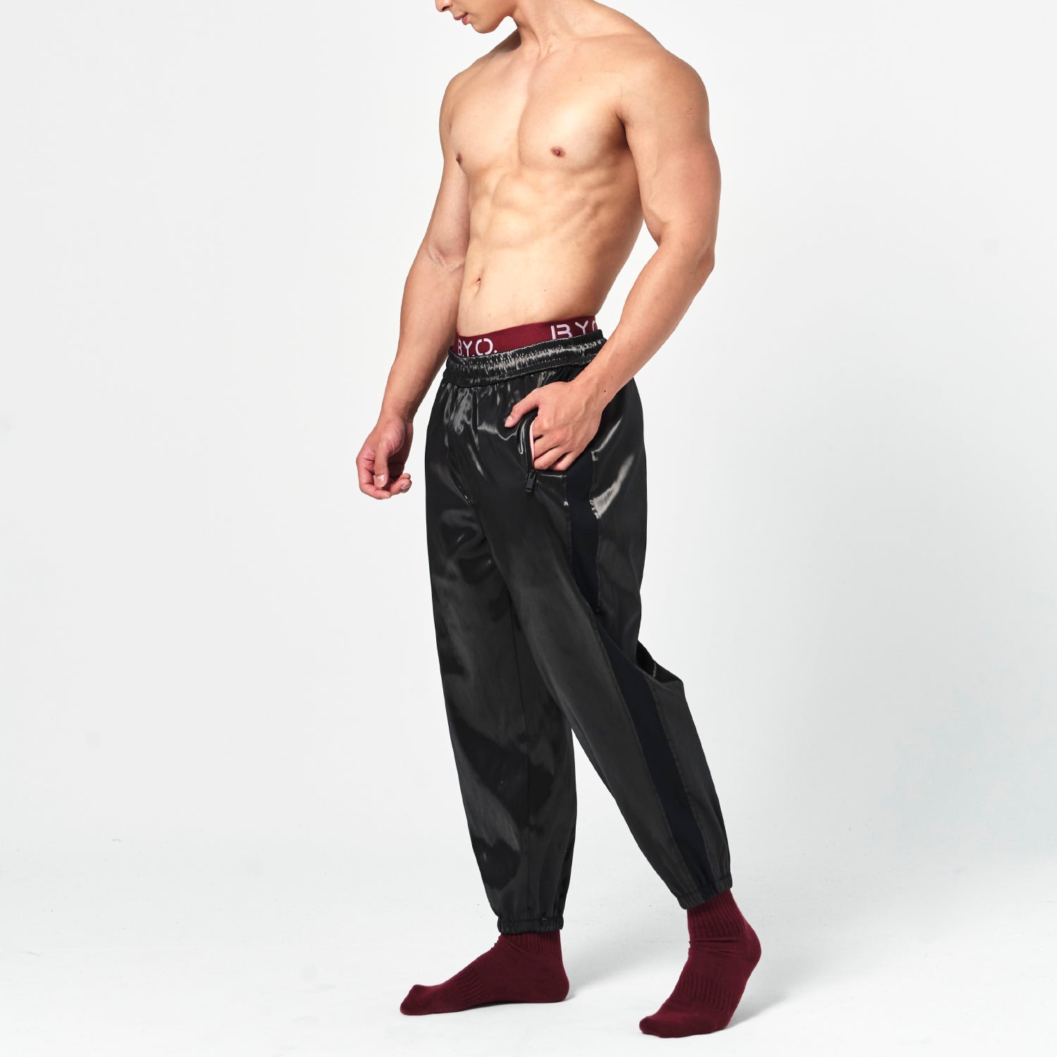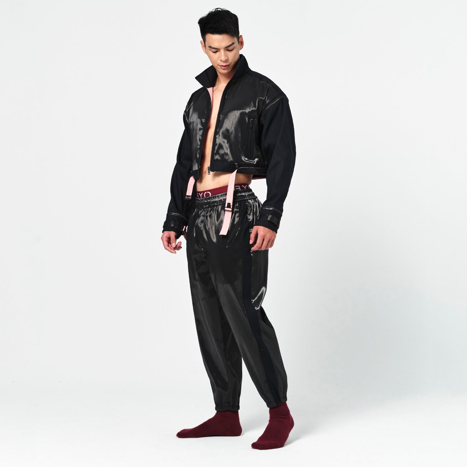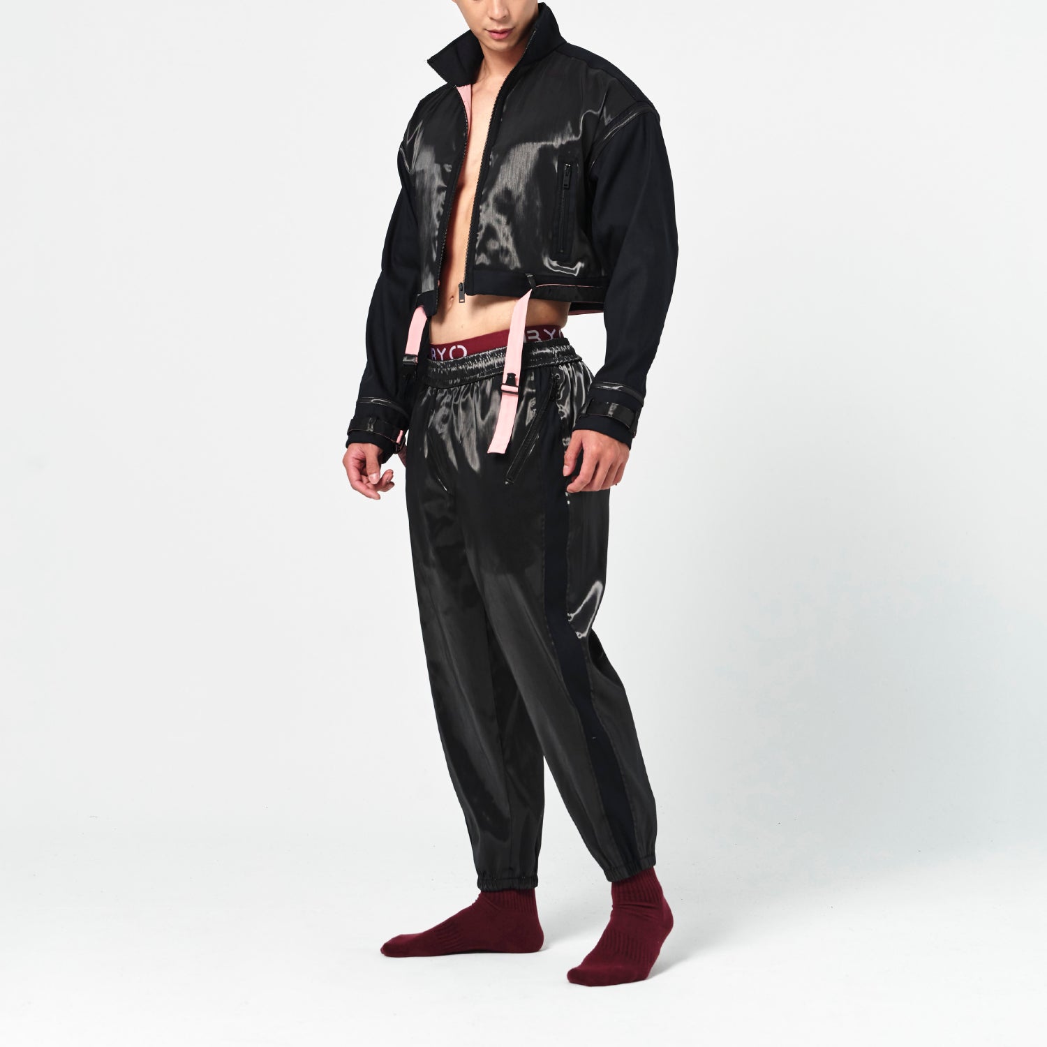 On SaleBeWithYou- 亮黑撞色拉鍊長褲