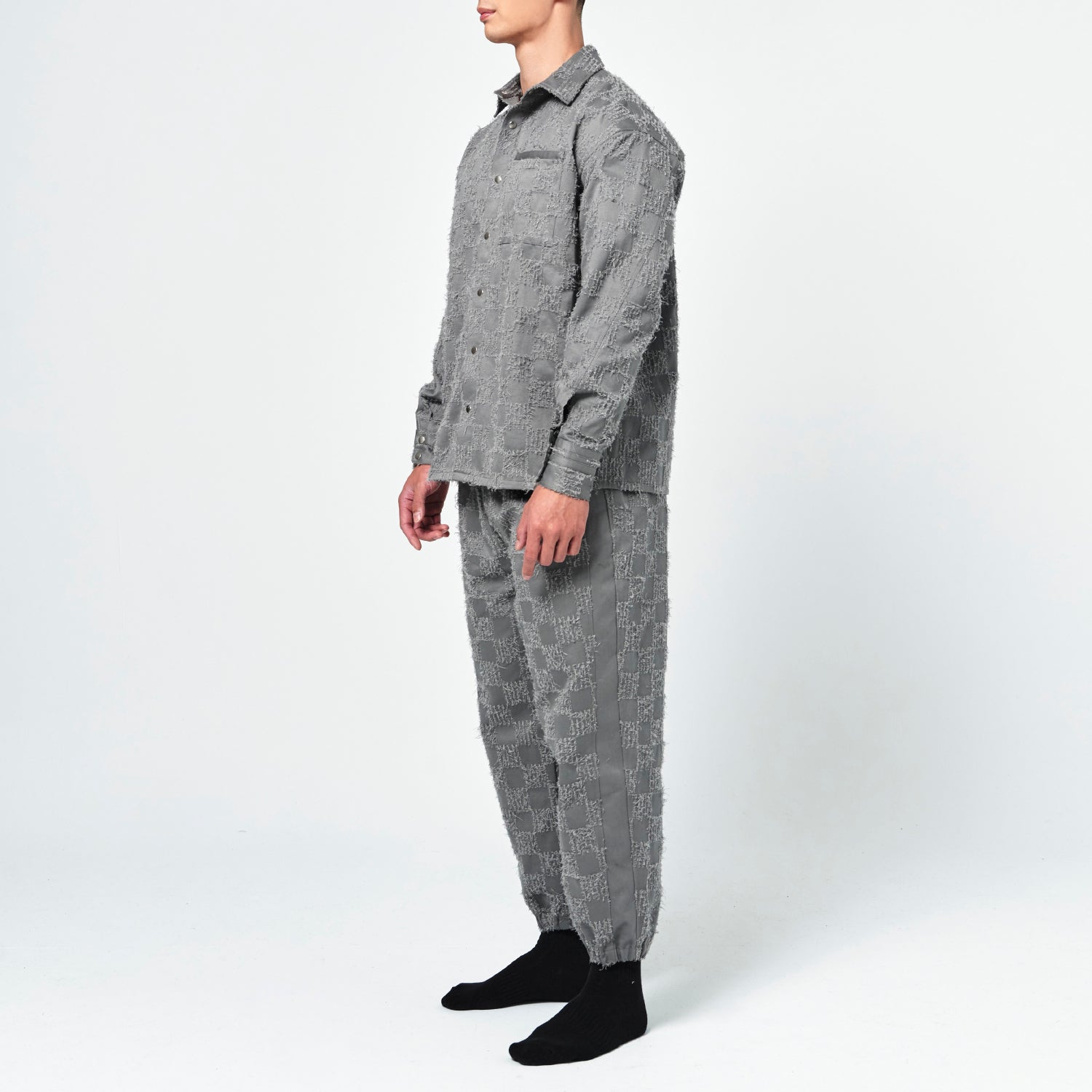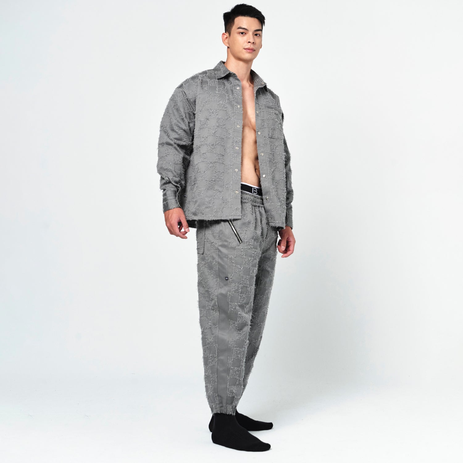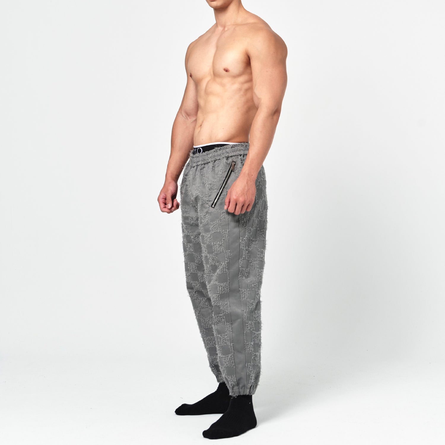On SaleBeWithYou- 灰毛格紋拉鍊長褲
