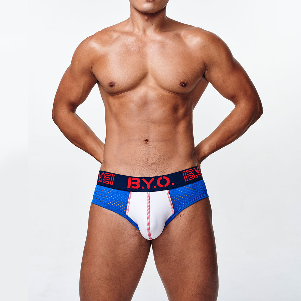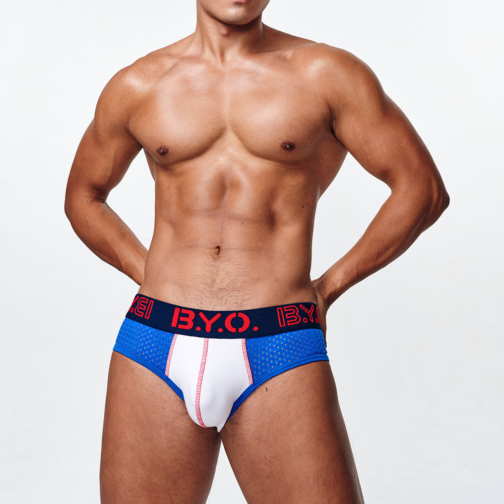B.Y.O. BeYourOwn 網孔透氣三角內褲 (藍白)